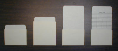 • All of our book pockets are constructed with reinforced top and side edges to prevent wear. The pockets are made from 77# pale cream card stock, and are completely acid free.